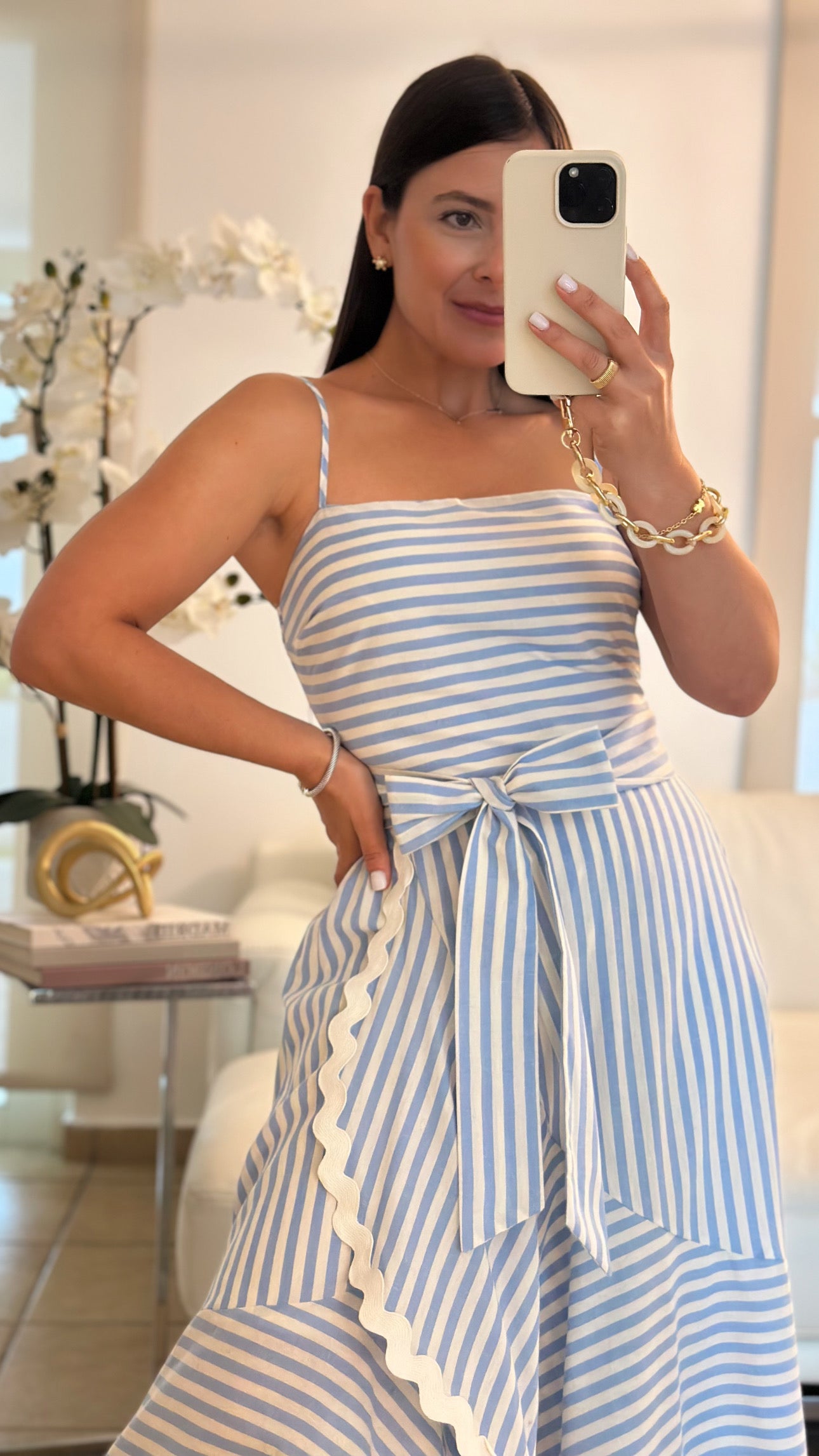 Striped blue ric rac midi dress