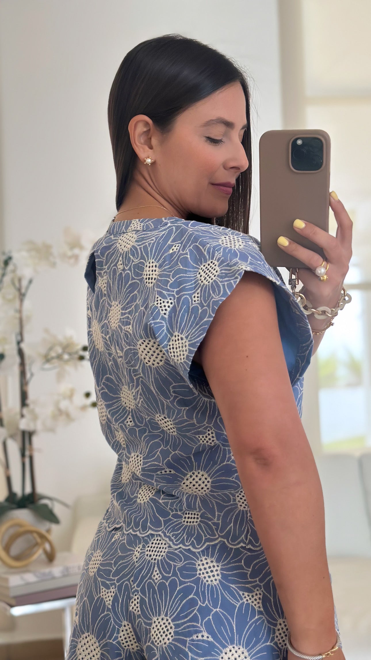 Blue eyelet top and short pant set